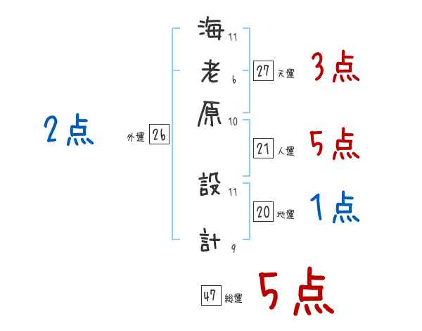 総運![]() | 海老原設計さんの総運は47画の5つ星!実力が開花し発展する円満な人生。財に恵まれる。 あなたの人生を表す1番重要な運勢です。生涯を通じて影響する総合運となり、主に50歳以降の晩年期に影響を及ぼします。 |