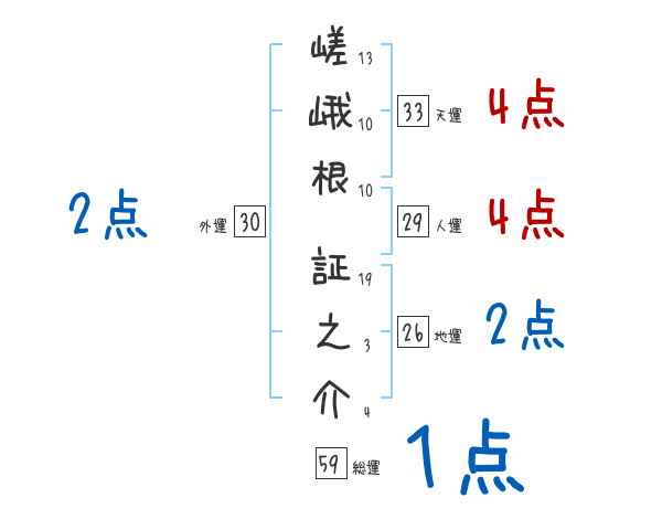 嵯峨根証之介さんの画数の鑑定結果