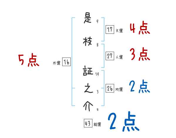 是枝証之介さんの画数の鑑定結果