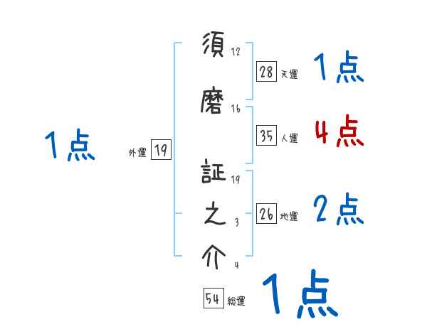 須磨証之介さんの画数の鑑定結果