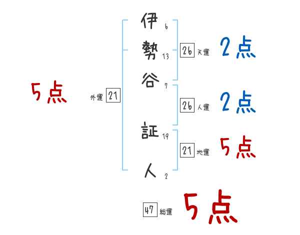 伊勢谷証人さんの画数の鑑定結果