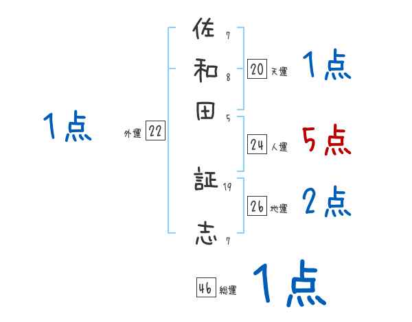 外運![]() | 佐和田証志さんの外運は22画の1つ星!努力することが苦手ないっぽう手先が器用。芸術性にも優れる。 生活面を象徴する運勢です。外部から受ける影響力を表し、結婚運、家庭運や職場、環境への順応性を表します。 |