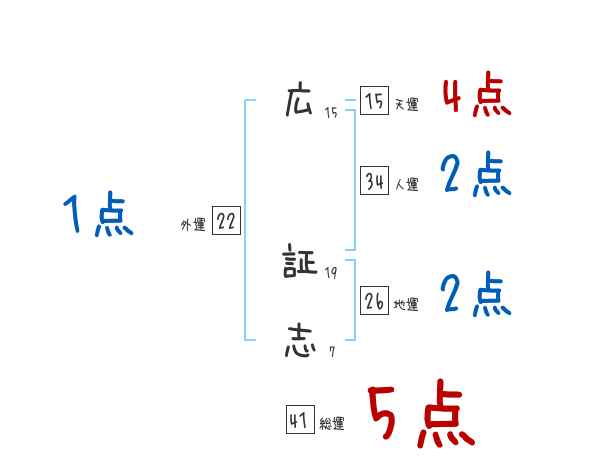 天運![]() | 広証志さんの天運は15画の4つ星!人徳があり出世する。順調に物事を進め円満な人生。 家系が持つ宿命的な運勢を表します。祖先から受け継いだ苗字ですので自分の力が及びません。家柄を象徴します。 |