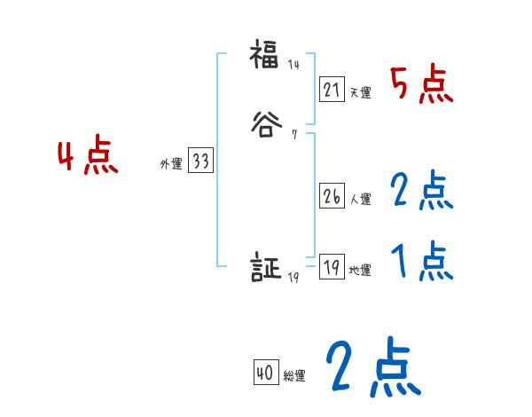 福谷証さんの画数の鑑定結果