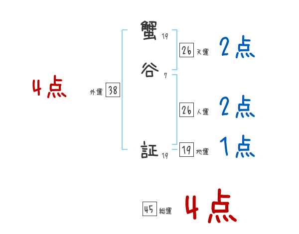 蟹谷証さんの画数の鑑定結果