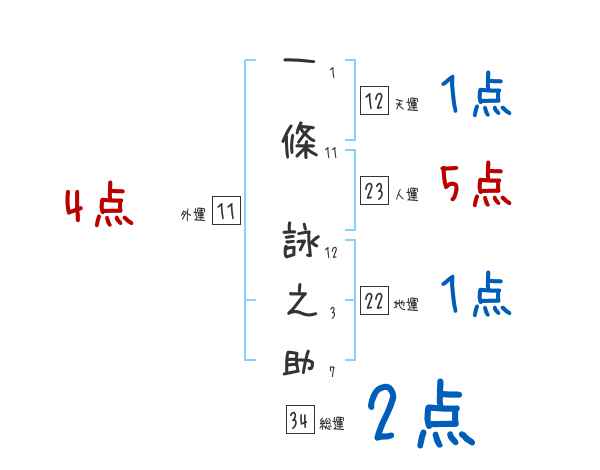 地運![]() | 一條詠之助さんの地運は22画の1つ星!努力することが苦手ないっぽう手先が器用。芸術性にも優れる。 個性を表す基礎的な運勢です。性格形成や対人関係、行動力など家庭環境に影響されます。主に誕生してから20歳くらいまでの若年期の運勢を表します。 |