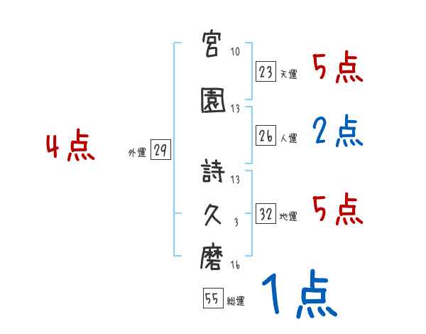 家系が持つ宿命的な運勢を表します。祖先から受け継いだ苗字ですので自分の力が及びません。家柄を象徴します。