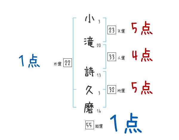 小滝詩久磨さんの画数の鑑定結果