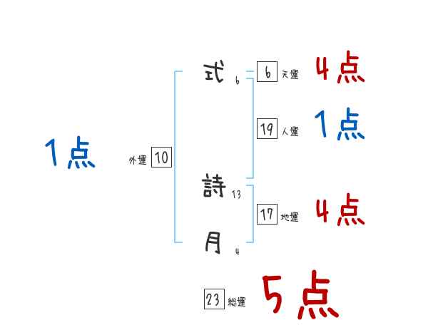 総運![]() | 式詩月さんの総運は23画の5つ星!想像力に優れ活力がある。一代で成功し名誉を手に入れる。 あなたの人生を表す1番重要な運勢です。生涯を通じて影響する総合運となり、主に50歳以降の晩年期に影響を及ぼします。 |