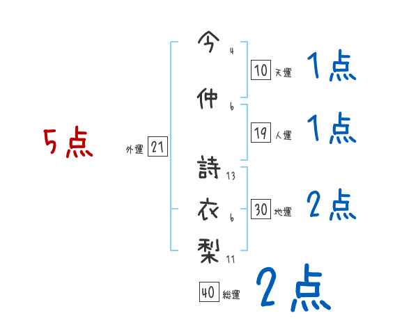 外運![]() | 今仲詩衣梨さんの外運は21画の5つ星!統率力がある。独立し成功する。名誉を手に入れる。 生活面を象徴する運勢です。外部から受ける影響力を表し、結婚運、家庭運や職場、環境への順応性を表します。 |