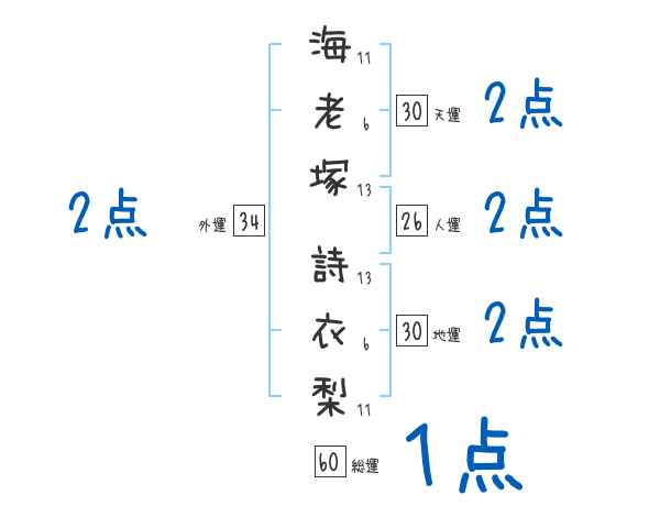 海老塚詩衣梨さんの画数の鑑定結果