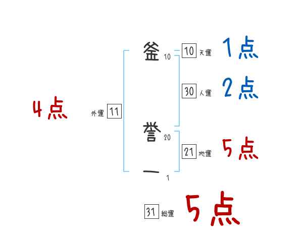 天運![]() | 釜誉一さんの天運は10画の1つ星!不安を感じやすい傾向。ストレスを抱えないように注意しましょう。 家系が持つ宿命的な運勢を表します。祖先から受け継いだ苗字ですので自分の力が及びません。家柄を象徴します。 |