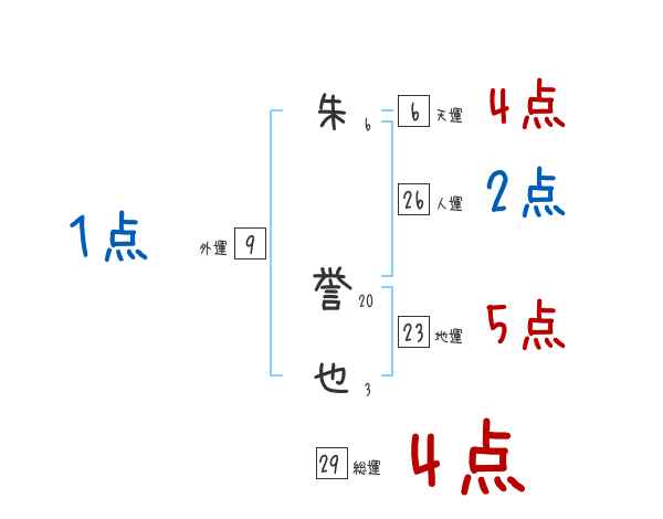 朱誉也さんの画数の鑑定結果