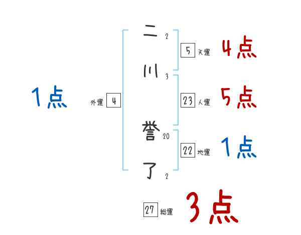 二川誉了さんの画数の鑑定結果
