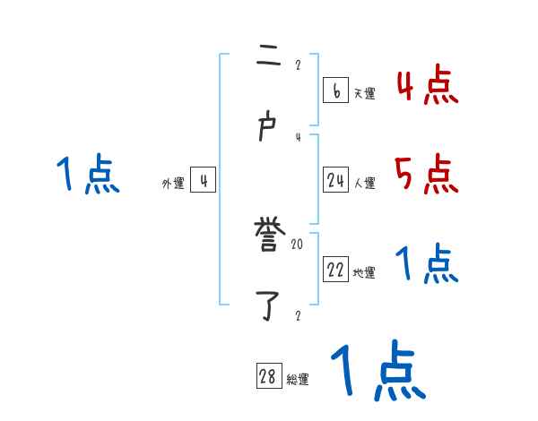 天運![]() | 二戸誉了さんの天運は6画の4つ星!慎重な努力家で信頼を得る。誠実な精神で向上心に優れる。 家系が持つ宿命的な運勢を表します。祖先から受け継いだ苗字ですので自分の力が及びません。家柄を象徴します。 |