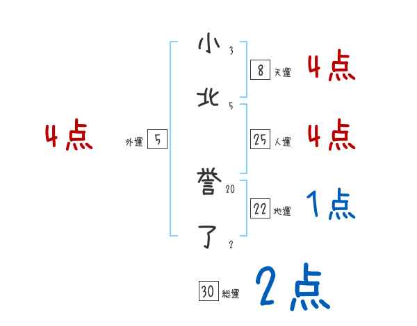 総運![]() | 小北誉了さんの総運は30画の2つ星!浮き沈みの激しさに注意しましょう。 あなたの人生を表す1番重要な運勢です。生涯を通じて影響する総合運となり、主に50歳以降の晩年期に影響を及ぼします。 |