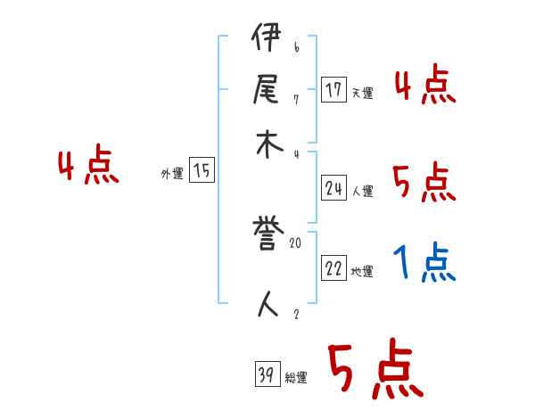 外運![]() | 伊尾木誉人さんの外運は15画の4つ星!人徳があり出世する。順調に物事を進め円満な人生。 生活面を象徴する運勢です。外部から受ける影響力を表し、結婚運、家庭運や職場、環境への順応性を表します。 |