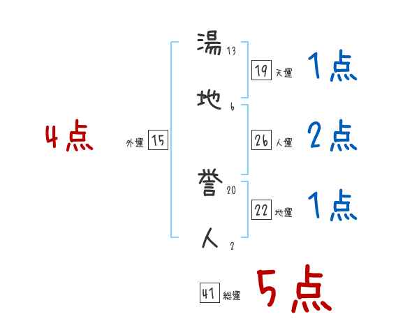 湯地誉人さんの画数の鑑定結果