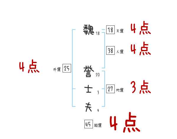 魏誉士夫さんの画数の鑑定結果