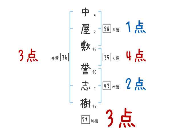 家系が持つ宿命的な運勢を表します。祖先から受け継いだ苗字ですので自分の力が及びません。家柄を象徴します。