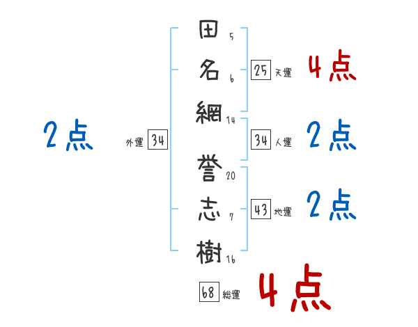 田名網誉志樹さんの総運は68画の4つ星