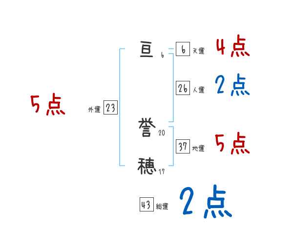 亘誉穂さんの画数の鑑定結果