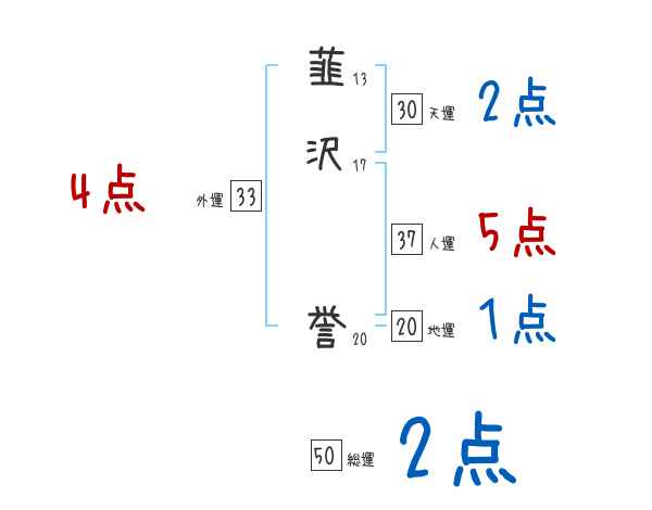 天運![]() | 韮沢誉さんの天運は30画の2つ星!浮き沈みの激しさに注意しましょう。 家系が持つ宿命的な運勢を表します。祖先から受け継いだ苗字ですので自分の力が及びません。家柄を象徴します。 |