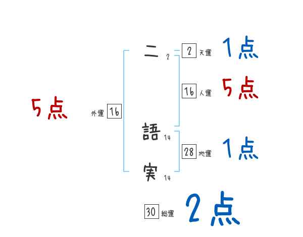 外運![]() | 二語実さんの外運は16画の5つ星!人望が厚く大きく発展する。逆転成功が見える。 生活面を象徴する運勢です。外部から受ける影響力を表し、結婚運、家庭運や職場、環境への順応性を表します。 |