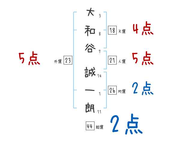 天運![]() | 大和谷誠一朗さんの天運は18画の4つ星!情熱的で剛気。忍耐力があり信頼される。 家系が持つ宿命的な運勢を表します。祖先から受け継いだ苗字ですので自分の力が及びません。家柄を象徴します。 |