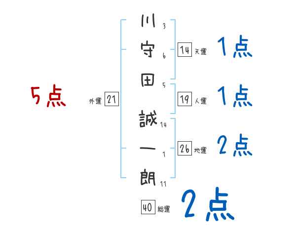 外運![]() | 川守田誠一朗さんの外運は21画の5つ星!統率力がある。独立し成功する。名誉を手に入れる。 生活面を象徴する運勢です。外部から受ける影響力を表し、結婚運、家庭運や職場、環境への順応性を表します。 |