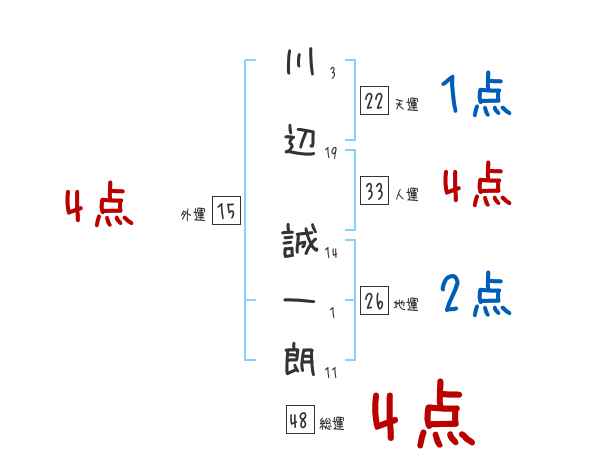 川辺誠一朗さんの画数の鑑定結果