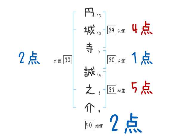 天運![]() | 円城寺誠之介さんの天運は29画の4つ星!完全主義で才能がある。厳格な心の持ち主。 家系が持つ宿命的な運勢を表します。祖先から受け継いだ苗字ですので自分の力が及びません。家柄を象徴します。 |