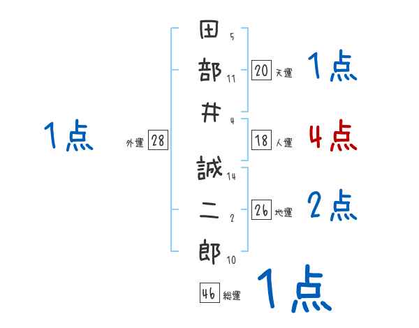外運![]() | 田部井誠二郎さんの外運は28画の1つ星!家庭環境に注意。スポーツで活躍できる能力があるかも。 生活面を象徴する運勢です。外部から受ける影響力を表し、結婚運、家庭運や職場、環境への順応性を表します。 |