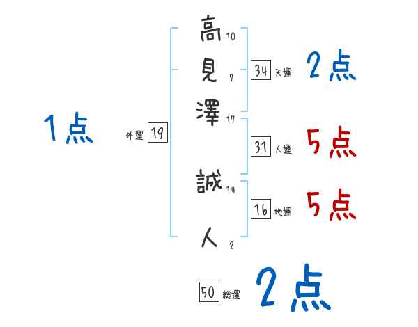 高見澤誠人さんの画数の鑑定結果