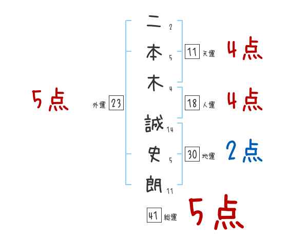 二本木誠史朗さんの画数の鑑定結果