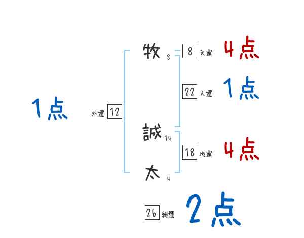 牧誠太さんの画数の鑑定結果