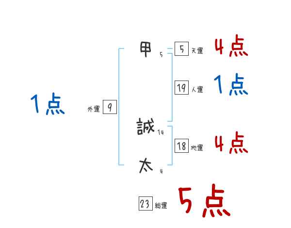 甲誠太さんの画数の鑑定結果