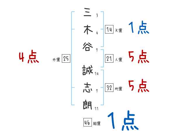 三木谷誠志朗さんの画数の鑑定結果