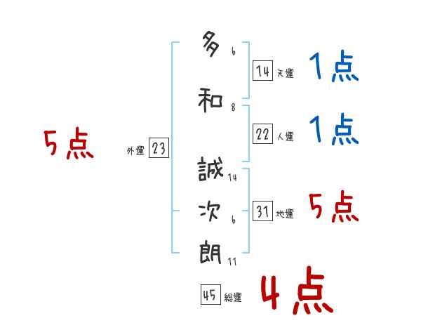 外運![]() | 多和誠次朗さんの外運は23画の5つ星!想像力に優れ活力がある。一代で成功し名誉を手に入れる。 生活面を象徴する運勢です。外部から受ける影響力を表し、結婚運、家庭運や職場、環境への順応性を表します。 |