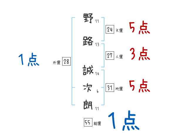 野路誠次朗さんの画数の鑑定結果
