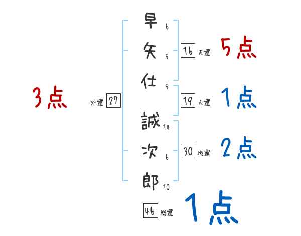 天運![]() | 早矢仕誠次郎さんの天運は16画の5つ星!人望が厚く大きく発展する。逆転成功が見える。 家系が持つ宿命的な運勢を表します。祖先から受け継いだ苗字ですので自分の力が及びません。家柄を象徴します。 |