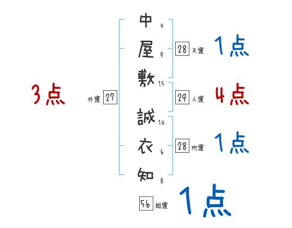 中屋敷誠衣知さんの画数の鑑定結果