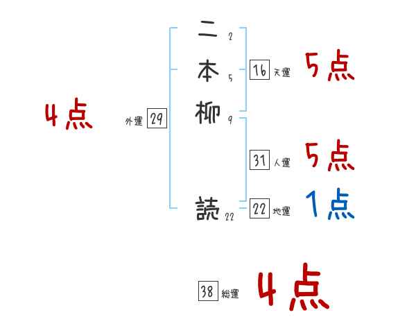二本柳読さんの画数の鑑定結果