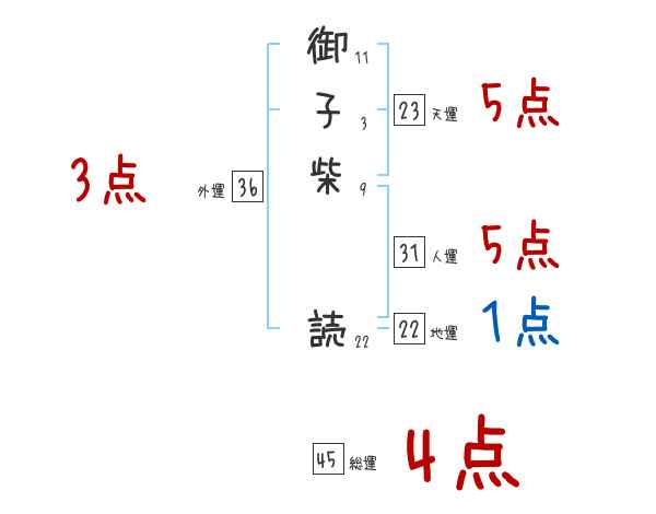 御子柴読さんの画数の鑑定結果