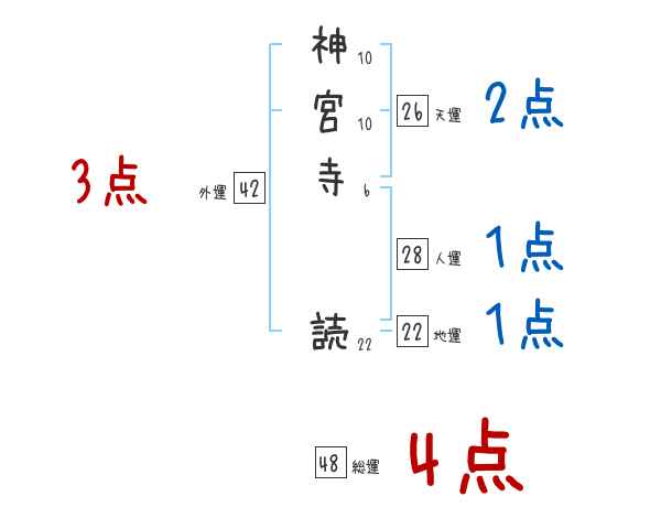 地運![]() | 神宮寺読さんの地運は22画の1つ星!努力することが苦手ないっぽう手先が器用。芸術性にも優れる。 個性を表す基礎的な運勢です。性格形成や対人関係、行動力など家庭環境に影響されます。主に誕生してから20歳くらいまでの若年期の運勢を表します。 |