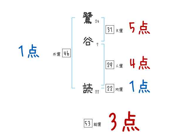 総運![]() | 鷺谷読さんの総運は53画の3つ星!やや見栄っ張りで虚栄心がある。散財に注意。 あなたの人生を表す1番重要な運勢です。生涯を通じて影響する総合運となり、主に50歳以降の晩年期に影響を及ぼします。 |