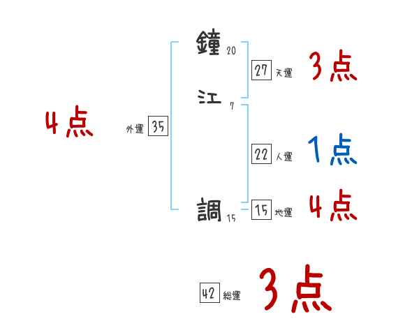 鐘江調さんの画数の鑑定結果