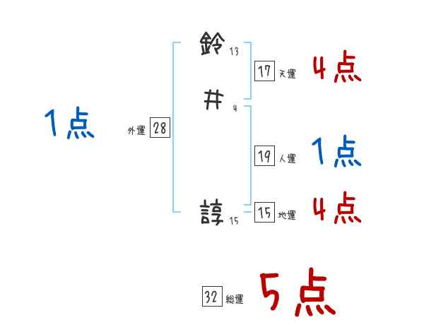 鈴井諄さんの画数の鑑定結果