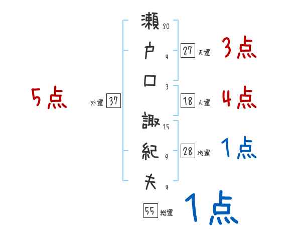 瀬戸口諏紀夫さんの画数の鑑定結果