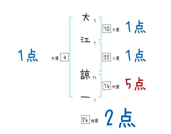 大江諒一さんの画数の鑑定結果